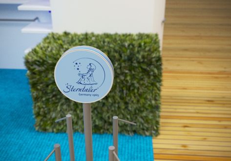 Dla spółki będącej przedstawicielem kilku zagranicznych producentów, w tym niemieckiego producenta przedmiotów dla dzieci – Sterntaler, przygotowaliśmy lokalizację stoiska otrzymanego z centrali firmy. Takie zlecenia wymagają specjalnego wsparcia merytorycznego: projekty powstają zagranicą, my dostosowujemy je do polskich realiów.
